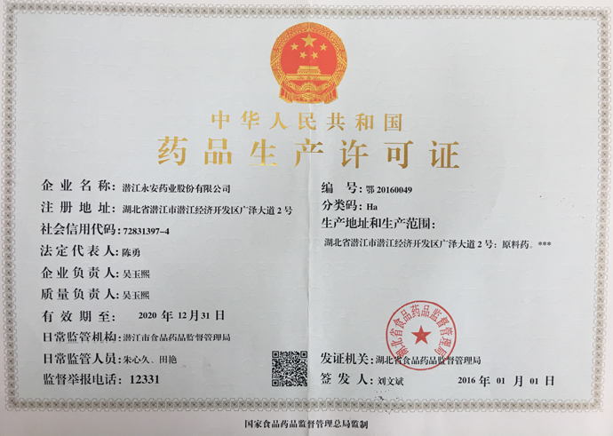 潛江永安藥業(yè)股份有限公司成立于2001年,坐落于江漢平原腹地潛江市國家高新技術(shù)產(chǎn)業(yè)開發(fā)區(qū),占地500余畝,注冊資金貳億玖仟肆佰陸拾捌萬貳仟伍佰元整,是一家擁有自主知識產(chǎn)權(quán)的國家高新技術(shù)企業(yè)。公司股票于2010年3 月5日在深圳證券交易所掛牌上市(股票代碼為002365)。公司具有雄厚的技術(shù)開發(fā)能力,是湖北省創(chuàng)新型企業(yè)和湖北省知識產(chǎn)權(quán)建設示范企業(yè)。公司研發(fā)平臺分別被認定為省級企業(yè)技術(shù)中心和湖北省功能性食品添加劑工程技術(shù)研究中心。 經(jīng)過多年的發(fā)展,公司形成了以食品及藥品添加劑牛磺